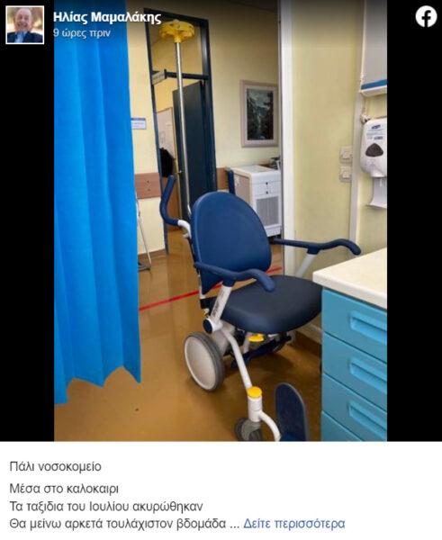O Ηλίας Μαμαλάκης ανέβασε φωτογραφία μέσα από το νοσοκομείο, γράφοντας χαρακτηριστικά: