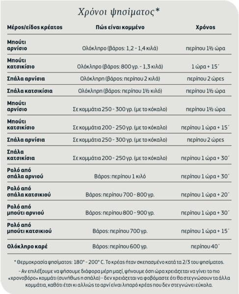 - Είτε πρόκειται για κομμάτια κρέατος είτε για άκοπα μέρη του ζώου (ολόκληρο μπούτι, σπάλα), καλό είναι το μεγαλύτερο μέρος του ψησίματος (δηλαδή παραπάνω από τον μισό χρόνο) να γίνεται με το κρέας σκεπασμένο. Με αυτόν τον τρόπο εξασφαλίζουμε μελωμένο, ζουμερό ψαχνό, χωρίς να ξεραθεί ή να παρασκουρύνει η επιφάνειά του. Ξεσκεπάζουμε προς το τέλος, για να ροδίσει και να γίνει τραγανή η πέτσα του κρέατος.