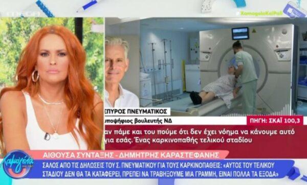 Η παρουσιάστρια του MEGA, απαντώντας στην προκλητική τοποθέτηση του πολιτικού-ιατρού για τους καρκινοπαθείς, ξέσπασε στον αέρα του «Χαμογέλα και Πάλι», κάνοντας αναφορά σε δικό της παράδειγμα από το στενό οικογενειακό της περιβάλλον.