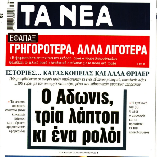 Το σημερινό πρωτοσέλιδο της εφημερίδας «ΤΑ ΝΕΑ» εμπλέκει τον Υπουργό Εργασίας Άδωνι Γεωργιάδη σε υπόθεση διαφθοράς και δωροδοκίας με διεθνείς διαστάσεις.
