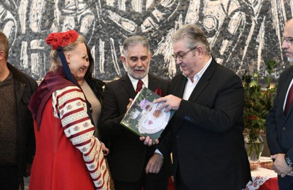 Ο Δ. Κουτσούμπας, αφού ευχαρίστησε τα μέλη της Παναρκαδικής Ομοσπονδίας, προσέφερε στον Πρόεδρό της, την έκδοση του Τμήματος Ιστορίας της ΚΕ του ΚΚΕ για το 1821, καθώς και στα μέλη της, ημερολόγιο για το 2024, χριστουγεννιάτικη κάρτα και άλλες εκδόσεις της «Σύγχρονης Εποχής».