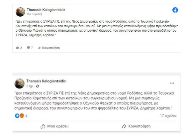 Ο Θανάσης Καλογιαντσίδης ο οποίος παραιτήθηκε από τη θέση που είχε στον ΣΥΡΙΖΑ – ΠΣ τον Ιανουάριο καταγγέλοντας «ανθρωποφαγίες, μηχανισμούς, εσωστρέφεια» και «παράδοση στο Προξενείο» έκανε μια ανάρτηση την περασμένη Κυριακή στην οποία μιλά για επικράτηση του τουρκικού Προξενείου στο νομό Ροδόπης, ενώ όπως τονίζει, ο Φερχάτ Οζγκιούρ πριμοδοτείται «με συμπαγώς κατευθυνόμενη ψήφο του συνυποψηφίου του στο ψηφοδέλτιο του ΣΥΡΙΖΑ, Δημήτρη Χαρίτου».