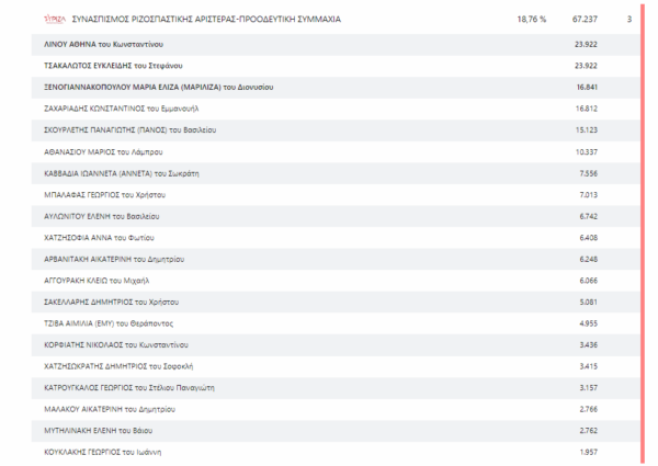 Συγκεκριμένα, στο 93,76% της ενσωμάτωσης (917 / 978 ΕΤ) στον Β1′ Βόρειου Τομέα Αθηνών το όνομα του Γιώργου Κατρούγκαλου πήρε 3.157 σταυρούς.