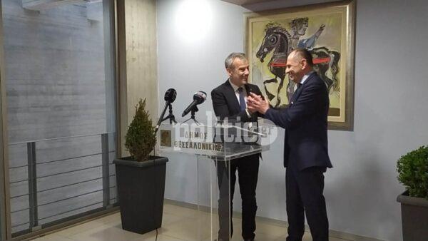Ολοκληρώθηκε η σύσκεψη του υπουργού επικρατείας και αρμόδιο για θέματα Μεταφορών και Υποδομών Γιώργου Γεραπετρίτη με τον δήμαρχο Θεσσαλονίκης Κωνσταντίνο Ζέρβα.