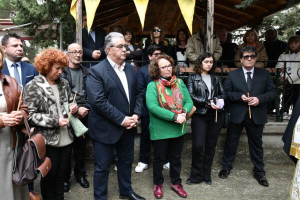 Μετά το τέλος της δέησης ο ΓΓ της ΚΕ του ΚΚΕ σημείωσε: «Για μας, για όλη την οικογένεια, για το χωριό, για την πατρίδα, δεν είναι μόνο μέρα μνήμης σήμερα, αλλά είναι και μέρα υπόσχεσης να συνεχίσουμε στα ιδανικά που πάλεψαν και ο Παπαδημήτρης Κουτσούμπας, οδηγώντας τον εαυτό του, το γιό του και άλλους από τους Γερμανούς ναζί κατακτητές στο θάνατο, αλλά ο θάνατος σημαίνει αθανασία στη σκέψη μας, στη ζωή μας. Τελικά η θυσία τους αποδίδει καρπούς γιατί συνεχίζουμε αυτό τον μεγάλο ηρωικό αγώνα που έκαναν εκείνοι οι ΕΑΜίτες αγωνιστές, αλλά και οι μετέπειτα συνεχιστές τους σε όλους τους αγώνες του λαού μας».