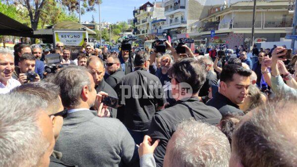 Τον πρωθυπουργό υποδέχθηκαν δεκάδες πολίτες με συνθήματα, χειροκροτήματα, αλλά και σημαίες της ΝΔ, με τον ίδιο να στέλνει μήνυμα ενόψει των ευρωεκλογών. “Οι κάλπες τον Ιούνιο θα στείλουν μήνυμα για την πορεία του τόπου. Η Ελλάδα πηγαίνει σταθερά, τολμηρά, μπροστά”, ενώ στη συνέχεια εξαπέλυσε επίθεση στον ΣΥΡΙΖΑ και τον Στέφανο Κασσελάκη. “Ο αρχηγός της αξιωματικής αντιπολίτευσης ζήτησε πρόωρες εκλογές, ενώ έθεσε του κόμματός του το 17%. Γνωρίζει ότι θα είναι δεύτερος, άρα θέλει την αποσταθεροποίηση της χώρας. Δεν θα το επιτρέψουμε να γίνει”, υποστήριξε ο κ. Μητσοτάκης.