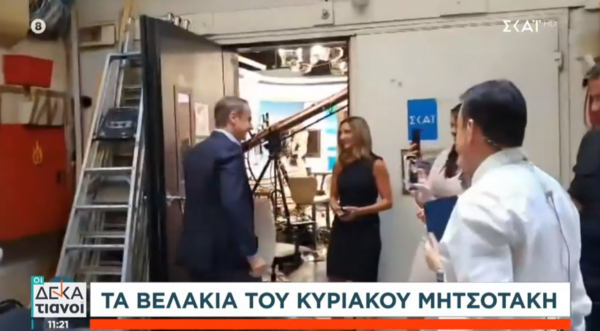 Ο Κυριάκος Μητσοτάκης βρέθηκε το πρωί της Κυριακής (11.06.2023) στον ΣΚΑΪ για να δώσει συνέντευξη στον Γιώργο Αυτιά. Σε ένα από τα διαλείμματα της συνέντευξης που έδωσε, ο πρόεδρος της Νέας Δημοκρατίας έπαιξε… βελάκια, σε ένα στόχο που έχουν τοποθετήσει οι εργαζόμενοι στα backstage του studio του ΣΚΑΪ.