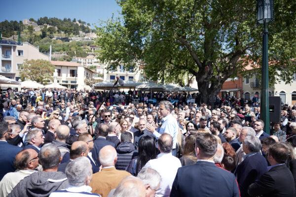 «Φίλες και φίλοι, έχω ξεκινήσει αυτή την πορεία σε αυτή την προεκλογική περίοδο και πρόθεσή μου είναι να γυρίσω κάθε γωνιά της πατρίδας μας. Βλέπετε εμείς δεν αφήνουμε μέρα να πάει χαμένη. Κάποιοι άλλοι κάνουν χαλαρά τριήμερα, εμείς γυρνάμε από χωριό σε χωριό, από πόλη σε πόλη, για να μεταφέρουμε το μήνυμα της νίκης. Αλλά κυρίως να μιλήσουμε για το αύριο της πατρίδας μας και για το ποιο τελικά είναι το μεγάλο στοίχημα των εκλογών της 21ης Μαΐου. Διότι λέμε κάθε φορά, σε κάθε εκλογική αναμέτρηση, ότι κάθε εκλογή είναι κρίσιμη.