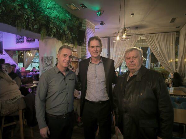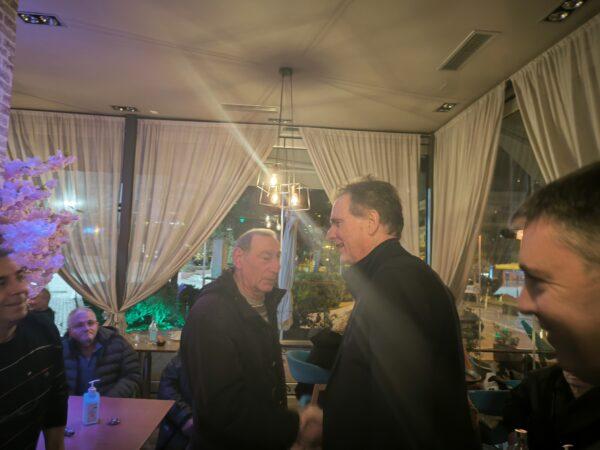 Τον κ. Παπανδρέου υποδέχτηκε ο ιδιοκτήτης του μαγαζιού κ. Χρήστος Αντίνου, ενώ τον προλόγισε η πολιτευτής Α’ Θεσσαλονίκης του ΠΑΣΟΚ – ΚΙΝΑΛ κ. Νάνσυ Παπαδάτου, ενώ τον δήμαρχο Κορδελιού – Ευόσμου Λευτέρη Αλεξανδρίδη εκπροσώπησε ο κ. Αντώνης Κοντσίδης.