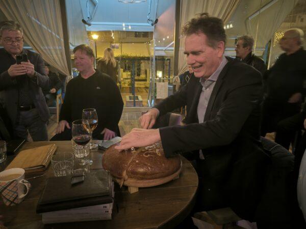 Μετά την ομιλία του, πολίτες του έθεσαν τους προβληματισμούς τους ενώ στη συνέχεια ο κ. Παπανδρέου έκοψε μια βασιλόπιτα, με τρεις τυχερούς να κερδίζουν τρία βιβλία από τη συγγραφική συλλογή του.
