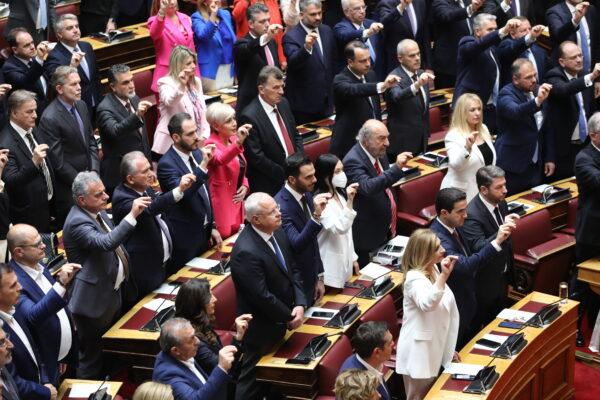 Στα έδρανα των βουλευτών της ΝΔ δίπλα-δίπλα επέλεξαν να καθίσουν η Ντόρα Μπακογιάννη με τον Δημήτρη Αβραμόπουλο, ο Μάκης Βορίδης με την Νίκη Κεραμέως και ο Θάνος Πλεύρης με τον ‘Αδωνη Γεωργιάδη.