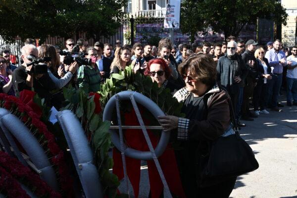Αντιπροσωπείες του ΚΚΕ και της ΚΝΕ βρέθηκαν το πρωί της Πέμπτης (16/11) στον χώρο του Πολυτεχνείου για να καταθέσουν στεφάνι με αφορμή την 50η επέτειο.