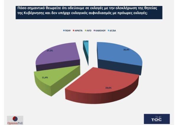 1. Το 59% θεωρεί σημαντικό ότι οδεύουμε σε εκλογές με ολοκλήρωση της θητείας της κυβέρνησης χωρίς να έχουν υπάρξει πρόωρες εκλογές με το 38% να έχει αντίθετη άποψη.