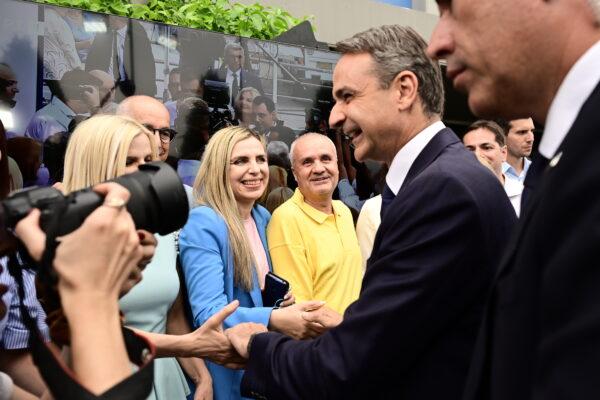 Δίπλα στον επικεφαλής της ΝΔ βρίσκεται η σύζυγός του Μαρέβα Γκραμπόφσκι.