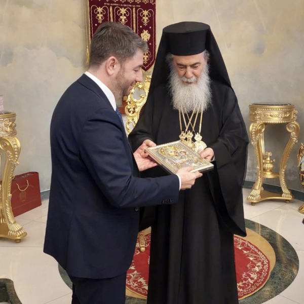 Στα Ιεροσόλυμα βρίσκεται ο πρόεδρος του ΠΑΣΟΚ – ΚΙΝΑΛ κ. Νίκος Ανδρουλάκης ανήμερα της Κυριακής των Βαΐων, όπου συναντήθηκε με τον Μακαριώτατο Πατριάρχη Ιεροσολύμων κ.κ. Θεόφιλο Γ’.