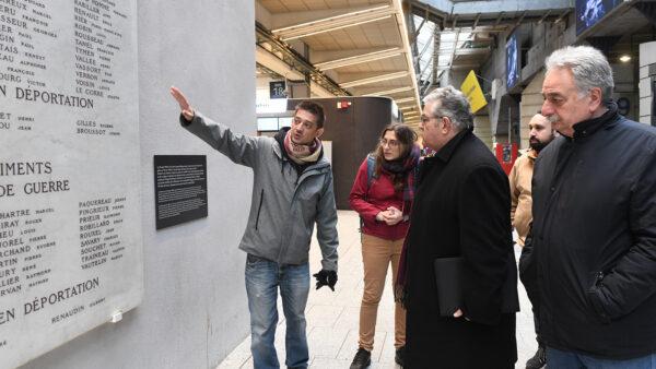 Νωρίτερα, οι απεργοί έδειξαν στον Δημήτρη Κουτσούμπα το μνημείο που έχει στηθεί στο σημείο που τα γερμανικά ναζιστικά στρατεύματα κατοχής παραδόθηκαν στους ένοπλους εργάτες του Παρισιού.