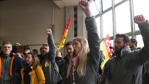 Τον κ. Κουτσούμπα υποδέχθηκαν με υψωμένες γροθιές οι εργαζόμενοι – απεργοί στους σιδηρόδρομους της Γαλλίας η οποίοι φώναζαν συνθήματα ενάντια στην μεταρρύθμιση του Μακρόν.