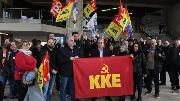 Στη Γαλλία για να εκφράσει την αλληλεγγύη του ΚΚΕ στους απεργούς εργάτες για το συνταξιοδοτικό έστειλε ο ΓΓ της ΚΕ του ΚΚΕ, Δημήτρης Κουτσούμπας.