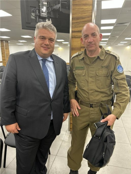 Στη συνέχεια η αποστολή επέστρεψε στο Τελ Αβίβ όπου και επισκέφθηκε το Γενικό Αρχηγείο των Δυνάμεων Άμυνας του Ισραήλ στην περιοχή Kirya του Τελ Αβίβ. Κατά τη διάρκεια της επίσκεψης τους έλαβαν αναλυτική ενημέρωση ασφαλείας σχετικά με την τρομοκρατική επιδρομή της Χαμάς και την ισραηλινή αντίδραση, από ανώτερο αξιωματικό των στρατιωτικών πληροφοριών των IDF και είχαν την ευκαιρία να συζητήσουν μαζί του όλες τις πτυχές των γεγονότων που εξελίσσονται στην περιοχή.