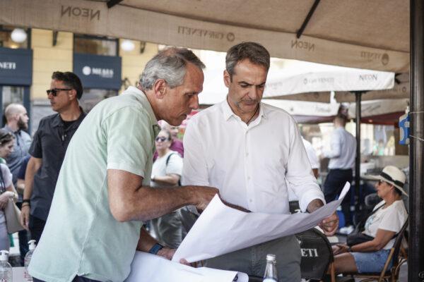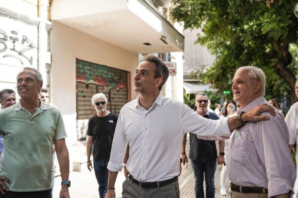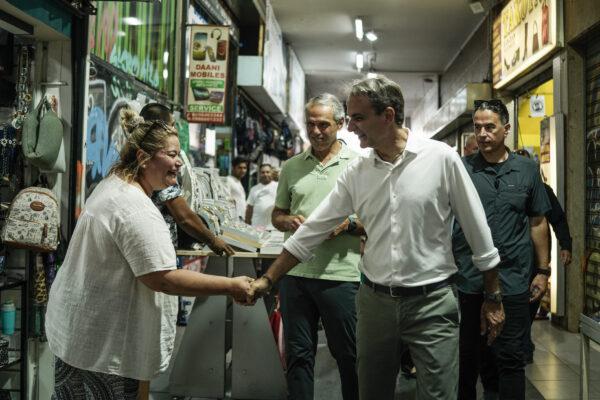 Στη συνέχεια ο Κυριάκος Μητσοτάκης περπάτησε στην περιοχή της Ομόνοιας, όπου συνομίλησε με καταστηματάρχες.
