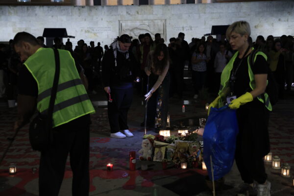 Το βράδυ της Κυριακής (26/10), περίπου 30 με 40 άτομα που εξέφρασαν την αλληλεγγύη τους συγκεντρώθηκαν στο Μνημείο του Αγνώστου Στρατιώτη, στο σημείο όπου είναι χαραγμένα τα 57 ονόματα των θυμάτων της τραγωδίας των Τεμπών, προχωρώντας στον καθαρισμό του χώρου.