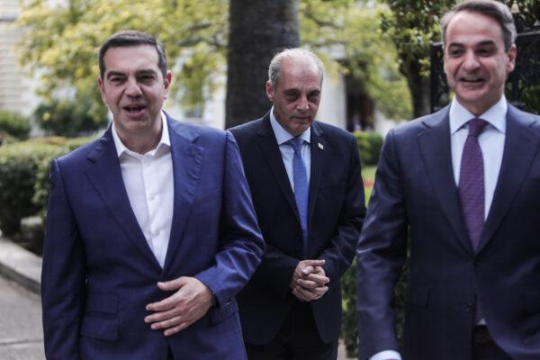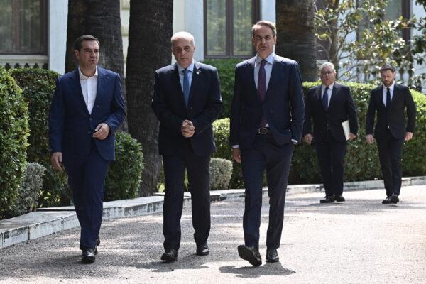 Ανοιχτό παράθυρο για νέο ντιμπέιτ φαίνεται πως άφησαν οι πολιτικοί αρχηγοί, με τον Κυριάκο Μητσοτάκη, τον Αλέξη Τσίπρα και τον Κυριάκο Βελόπουλο να βγαίνουν πρώτοι από το Προεδρικό Μέγαρο, ενώ από πίσω ακολουθούσαν ο Νίκος Ανδρουλάκης με τον Δημήτρη Κουτσούμπα.