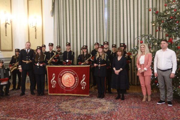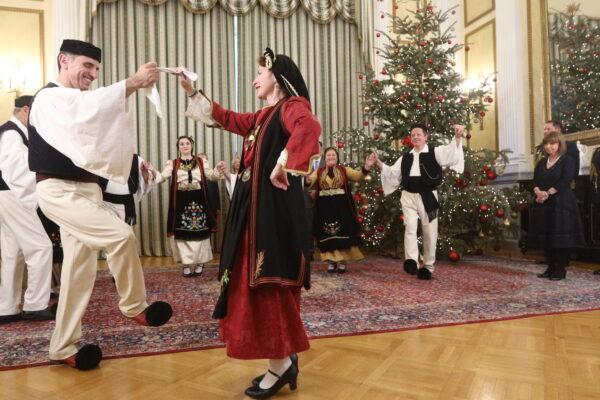 Κάλαντα είπαν επίσης στην κυρία Σακελλαροπούλου η Ένωση Απανταχού Μανιατών «Η Μάνη», η Ομοσπονδία Συλλόγων Ιεροψαλτών Ελλάδος, ενώ ξεχωριστό τόνο έδωσε το ουκρανικό σχολείο «Μπερεγίνια».