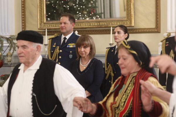 Ακόμη, κάλαντα είπαν οι συντοπίτες της Προέδρου, από την Πανθρακική Ομοσπονδία Νότιας Ελλάδας, αλλά και η χορωδία των Αστέγων του Ομίλου για την UNESCO Πειραιώς και Νήσων -μαζί τους ο βουλευτής Επικρατείας Γιώργος Σταμάτης, που έχει διατελέσει γραμματέας Κοινωνικής Αλληλεγγύης της Νέας Δημοκρατίας.