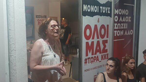Συγκεκριμένα η Θεανώ Καπέτη γραμματέας της ΚΟ κεντρικής Μακεδονίας και μέλος του ΠΓ ανακοίνωσε ότι στην Α Θεσσαλονίκης το ΚΚΕ βρίσκεται μετά από χρόνια στην τρίτη θέση με τον κόσμο να φωνάζει συνθήματα.