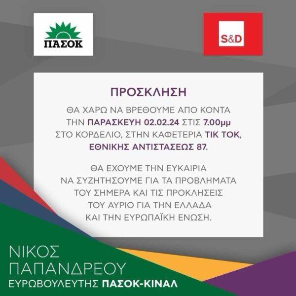 Ειδικότερα, ο ευρωβουλευτής αναμένεται να παραβρεθεί σε ανοιχτή εκδήλωση την Παρασκευή (2/2) στις 19:00 στο Κορδελιό, στην καφετέρια Τικ Τοκ που βρίσκεται στην Εθνικής Αντιστάσεως 87.