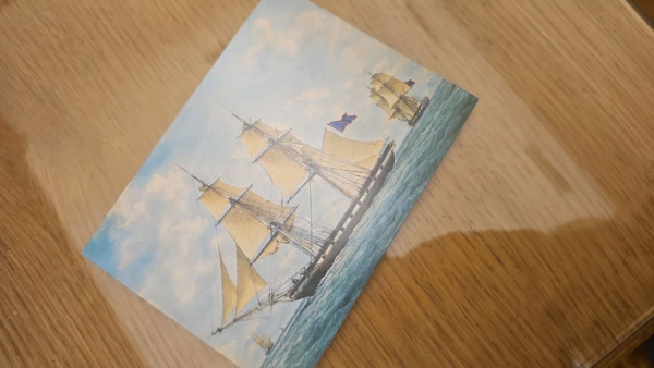 Μέσα στα δύο κουτιά υπήρχε και χειρόγραφη κάρτα στην οποία ο αρχηγός της αξιωματικής αντιπολίτευσης γράφει: «καλές γιορτές με υγεία και ευημερία!». Η κάρτα μάλιστα, είναι από τη συλλογή του Μουσείου Μπενάκη με το έργο του F. Roux, «το μπρίκι του Άρη», υδατογραφία του 1881.