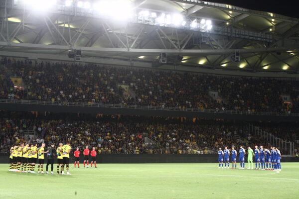Την ίδια στιγμή, οι φίλοι της ομάδας αντηχούσαν συνθήματα στο γήπεδο, εκφράζοντας τη θλίψη και τον πόνο τους.