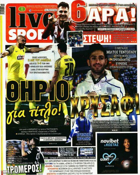 Δείτε όσα αναφέρουν τα σημερινά πρωτοσέλιδα των αθλητικών εφημερίδων σε Αθήνα και Θεσσαλονίκη.