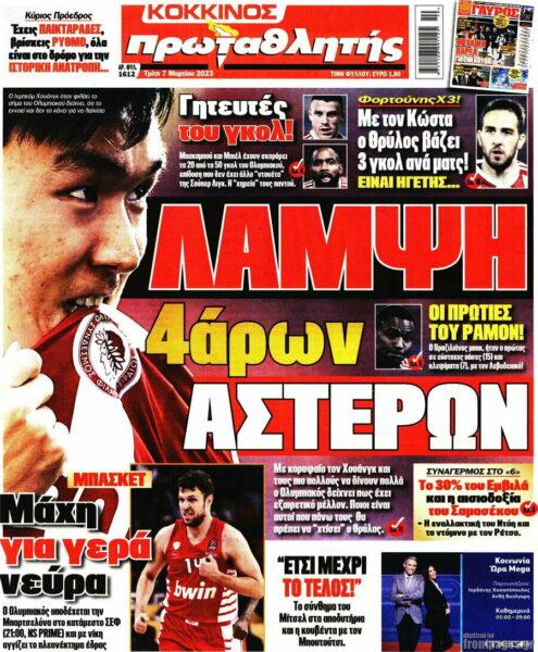 Δείτε όσα αναφέρουν τα σημερινά πρωτοσέλιδα των αθλητικών εφημερίδων σε Αθήνα και Θεσσαλονίκη.