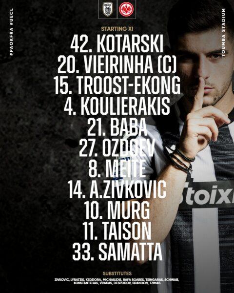 Δείτε τις επιλογές του προπονητή του ΠΑΟΚ, Ραζβάν Λουτσέσκου για την σημερινή μεγάλη αναμέτρηση κόντρα στην Άιντραχτ Φρανκφούρτης.