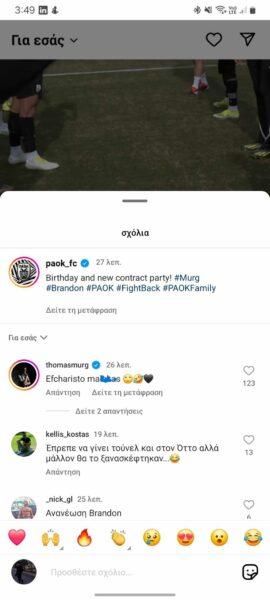 Συγκεκριμένα και μέσα από το βίντεο που μπορείτε να δείτε μέσα από το ίνσταγκραμ του ΠΑΟΚ, οι ποδοσφαιριστές του Δικεφάλου σχημάτισαν το γνωστό τούνελ, με τους Μουργκ και Τόμας να καλούνται να περάσουν από μέσα.