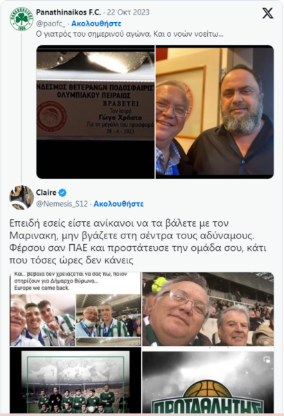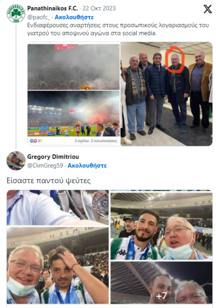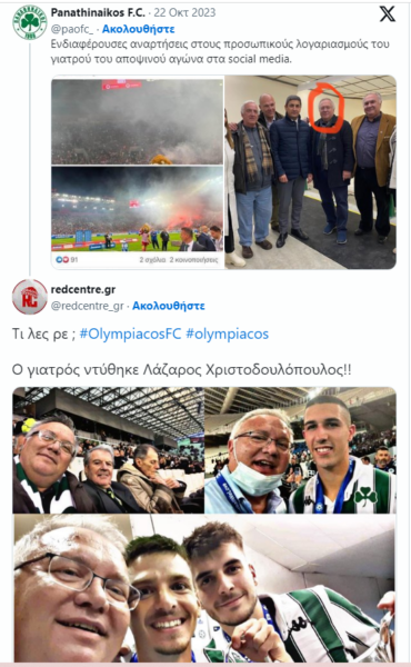 Αργότερα ωστόσο στην γνωστή πλατφόρμα εμφανίστηκαν φωτογραφίες του γιατρού με τους παίκτες του Παναθηναϊκού στην κατάκτηση του Κυπέλλου.