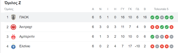 Στους ομίλους, ο ΠΑΟΚ τερμάτισε πρώτος και αήττητος στον 7ο όμιλο του Conference League, κερδίζοντας ακόμη και την ισχυρή Άιντραχτ Φρανκφούρτης.
