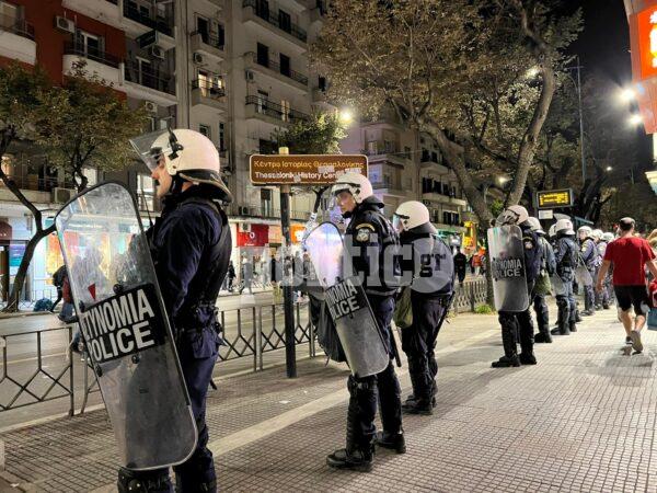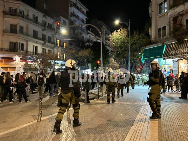 Την ίδια ώρα, σε εξέλιξη βρίσκεται η μαζική πορεία για την επέτειο του Πολυτεχνείου με την κεφαλή της να κινείται επι της Εγνατίας στο ύψος της πλατείας Αριστοτέλους με κατεύθυνση προς ανατολικά.