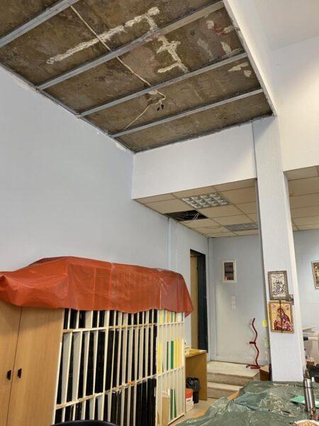 Ένα μεγάλο τμήμα της οροφής έπεσε επάνω στα γραφεία όπου δουλεύουν καθημερινά οι εργαζόμενοι στο Δημοτολόγιο Καλαμαριάς. Από καθαρή τύχη, καθώς το ατύχημα έγινε το Σαββατοκύριακο, δεν θρηνήσαμε θύματα.