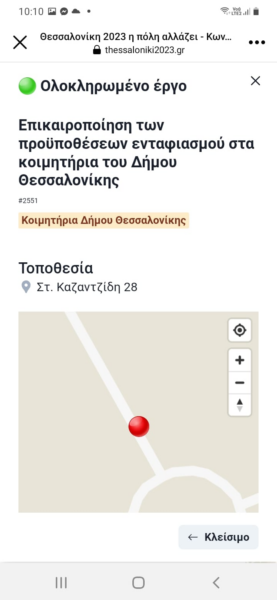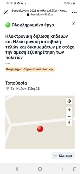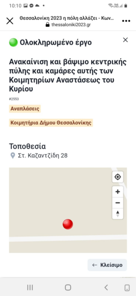 Στο https://thessaloniki2023.gr μπορεί κανείς να δει τον προεκλογικής έμπνευσης διαδραστικό χάρτη των ολοκληρωμένων και εξαγγελθέντων έργων του Δήμου Θεσσαλονίκης, στην πλειοψηφία τους συνεχιζόμενα έργα της προηγούμενης διοίκησης, ασφαλτοστρώσεις και συντηρήσεις φωτισμού – τα αυτονόητα και απαιτούμενα δηλαδή για κάθε δήμο.