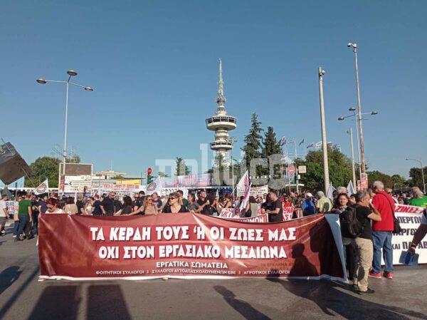 Η αναβολή της επίσκεψης του πρωθυπουργού, Κυριάκου Μητσοτάκη στη Θεσσαλονίκη εξαιτίας της βιβλικής καταστροφής στη Θεσσαλία, δεν απέτρεψε συνδικάτα και συλλογικότητες να πραγματοποιήσουν μαζικές συγκεντρώσεις και πορείες στο κέντρο της πόλης εν όψει ΔΕΘ.