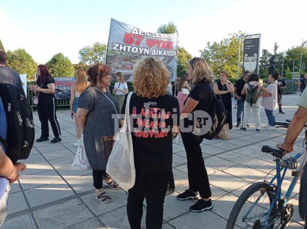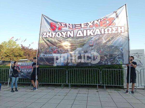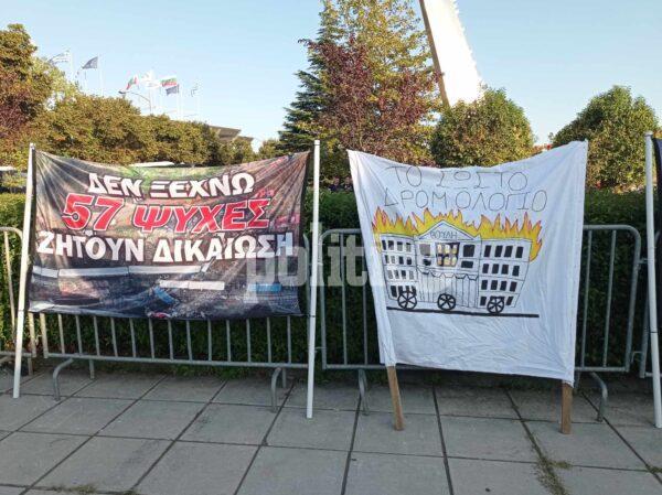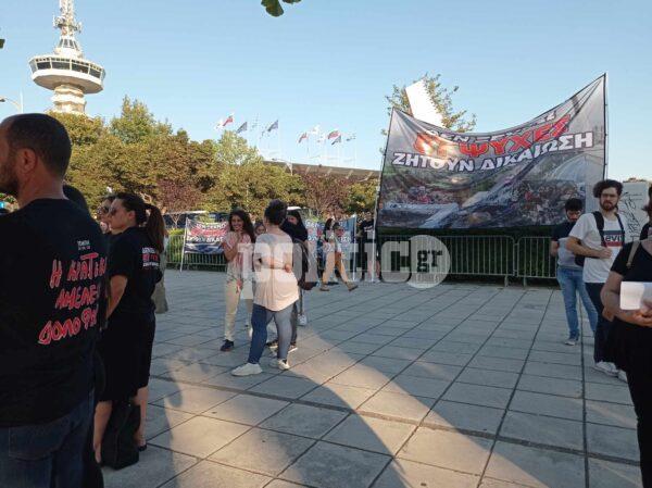 Συγγενείς των θυμάτων του σιδηροδρομικού δυστυχήματος στα Τέμπη συγκεντρώθηκαν στο πάρκο του Αρχαιολογικού Μουσείου με αφορμή την έναρξη της 87ης ΔΕΘ.