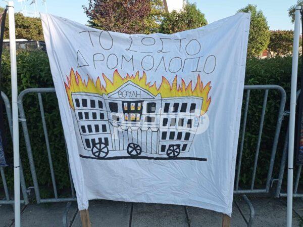 Κατά την ομιλία του ο Χρήστος Κωνσταντινίδης, εκπρόσωπος του Συλλόγου Ατόμων Πληγέντων Δυστυχήματος Τεμπών, ο οποίος έχασε τη σύζυγο του στην πολύνεκρη σύγκρουση των τρένων στα Τέμπη είπε: “Η κατάσταση στον σιδηρόδρομο είναι η ίδια και χειρότερη από πριν το δυστύχημα στα Τέμπη” και κατέληξε λέγοντας: “Απαιτούμε την παραίτηση της κυβέρνησης και την άρση της ασυλίας των πολιτικών προσώπων που εμπλέκονται στην τραγωδία των Τεμπών“.