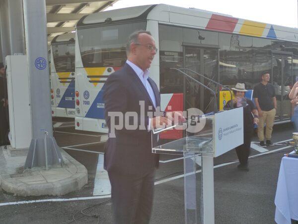 «Είμαστε συνεπείς στα χρονοδιαγράμματα που είχαμε θέσει και πιστοί απέναντι στις δεσμεύσεις μας στους συμπατριώτες μας Θεσσαλονικείς. Οι Θεσσαλονικείς ευλόγως είναι καχύποπτοι απέναντι στην αξιοπιστία του πολιτικού συστήματος επί σειρά ετών. Ο χώρος φόρτισης των ηλεκτρικών λεωφορείων, συνολικού εμβαδού 16 στρεμμάτων ήταν χωράφι πριν από λίγους μήνες. Περιλαμβάνει 110 θέσεις φόρτισης από 55 φορτιστές, εγκατάσταση δικτύου μεσαίας τάσης, έναν οικισμό κυψελών παροχής ΔΕΔΔΗΕ, εγκατάσταση δικτύων απορροής ομβρίων, ηλεκτροφωτισμού, γειώσεων, αντικεραυνικής προστασίας, ύδρευσης, πυροπροστασίας και κλειστού συστήματος επιτήρησης από κάμερες ασφαλείας. Θέλω να ευχαριστήσω την ανάδοχη εταιρεία για την τήρηση των χρονοδιαμμάτων και την ποιότητα του έργου, καθώς επίσης τους εργαζόμενους του ΟΑΣΘ, με τους οποίους έχουμε μια εξαιρετική συνεργασία, τη διοίκηση του ΟΑΣΘ και την υφυπουργό μέχρι πολύ πρόσφατα, κα Αλεξοπούλου για τη συμβολή της, όπως επίσης και τον γενικό γραμματέα. Ο νέος σταθμός είναι μια νευραλγική υποδομή για το συγκοινωνιακό έργο του ΟΑΣΘ, ένα πολύτιμο περιουσιακό στοιχείο για τον οργανισμό που εμπλουτίζεται διαρκώς με νέο προσωπικό και στόλο», ανέφερε χαρακτηριστικά ο Χρήστος Σταϊκούρας.