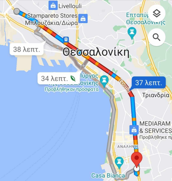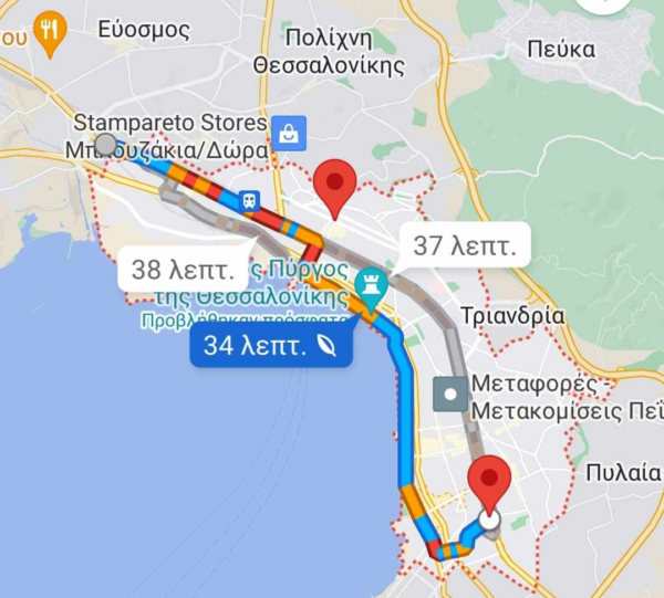 Όπως θα παρατηρήσει κανείς, πολλά σημεία τόσο του περιφερειακού όσο και της Εγνατίας με κατεύθυνση από δυτικά προς ανατολικά είναι «κοκκινισμένα» ενώ ακόμη πολλοί οδηγοί βρίσκονται στον χώρο εργασίας τους, γεγονός που σημαίνει ότι αναμένεται να δημιουργηθεί ακόμη μεγαλύτερο πρόβλημα για τους οδηγούς.