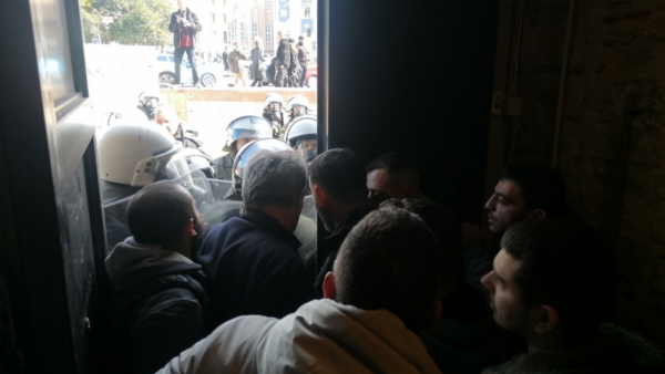 Τα ΜΑΤ μάλιστα τους εμποδίζουν να αποχωρήσουν από το Λευκό Πύργο με ασπίδες και σπρωξιές, ενώ τους ζητούν να καταγράψουν τα στοιχεία τους. Μάλιστα, οι αστυνομικές δυνάμεις επιτέθηκαν με χημικά και γκλομπς σε όσους ήταν έξω από τον Λευκό Πύργο, προκαλώντας τραυματισμούς.