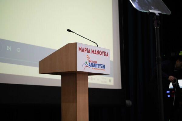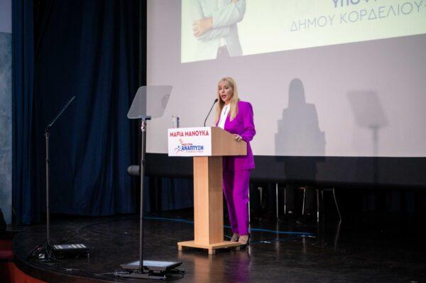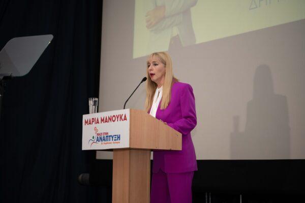 Είναι η ευθύνη που μας καλεί να αγωνιστούμε για τον τόπο που αγαπάμε, δημιουργώντας τις κατάλληλες συνθήκες για την ανάπτυξη της επιχειρηματικότητας και την ανάδειξη σημαντικών ευκαιριών για τη νέα γενιά, τις γυναίκες, τις ευπαθείς κοινωνικά ομάδες», ανέφερε η Μαρία Μανούκα κατά τη διάρκεια της χθεσινής της ομιλίας στο κατάμεστο Πολιτιστικό Κέντρο Ευόσμου.