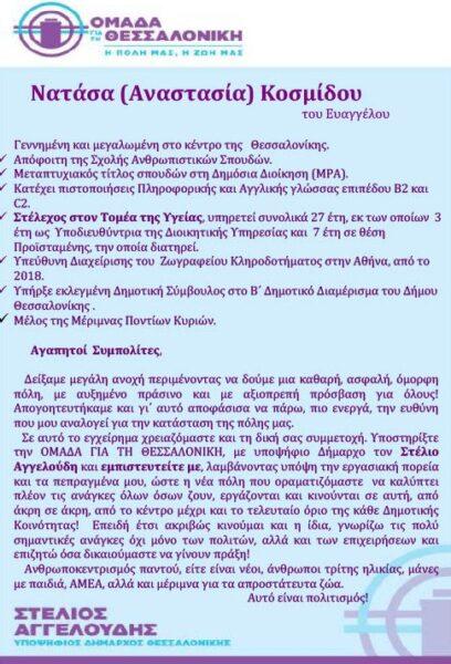 Στην επαγγελματική μου διαδρομή έμαθα να δουλεύω σκληρά και να κάνω το όραμα πράξη, να μετατρέπω προτάσεις και σχεδιασμούς σε έργο χειροπιαστό. Αυτό δεσμεύομαι να κάνω και στο Δήμο Θεσσαλονίκης, με την υλοποίηση ενός ολοκληρωμένου σχεδιασμού και την εφαρμογή συγκεκριμένων προτάσεων, που συμπεριλαμβάνονται στις προτάσεις και το όραμα του υποψήφιου Δημάρχου μας Στέλιου Αγγελούδη.