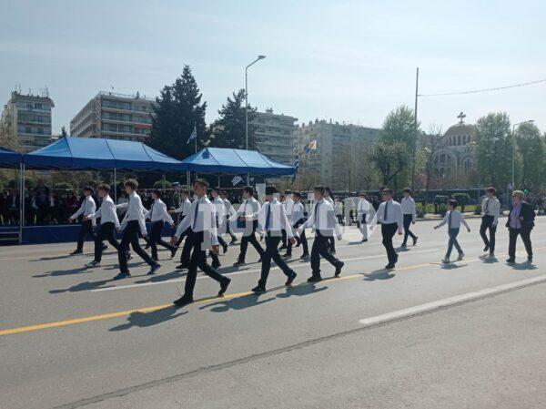 Με ενθουσιασμό και περηφάνια συμμετέχουν μαθητές και μαθήτριες από τα σχολεία της Θεσσαλονίκης στη σημερινή παρέλαση για την Εθνική Επέτειο της 25ης Μαρτίου.